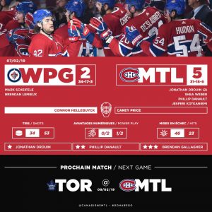 Cinquante-cinquième match de la saison régulière : Les Canadiens de Montréal n’ont pas tremblé face aux puissants Jets de Winnipeg,